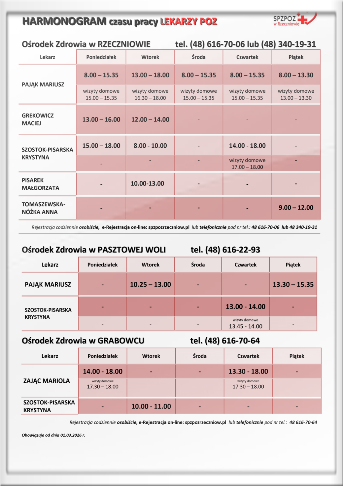 PORADNIA LEKARZA POZ PASZTOWA WOLA - Samodzielny Publiczny Zakład Podstawowej Opieki Zdrowotnej w Rzeczniowie