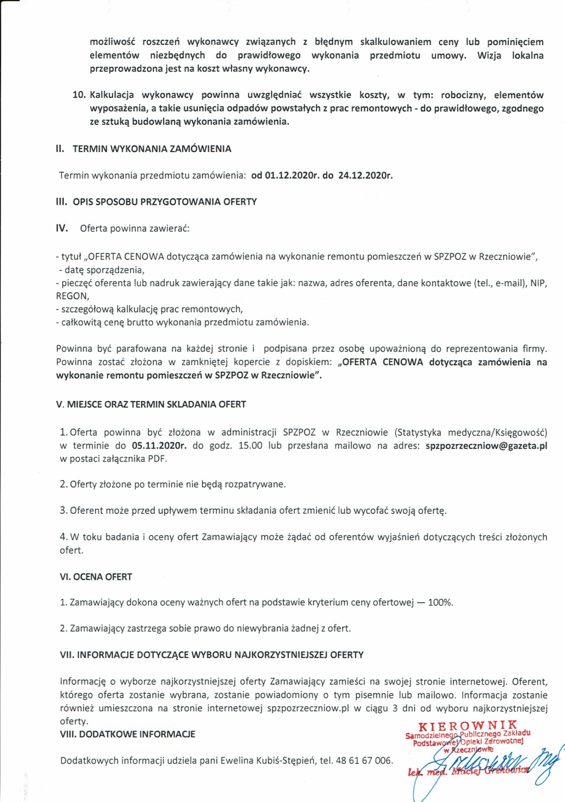 KIEROWNIK SAMODZIELNEGO PUBLICZNEGO ZAKŁADU PODSTAWOWEJ OPIEKI ZDROWOTNEJ W RZECZNIOWIE