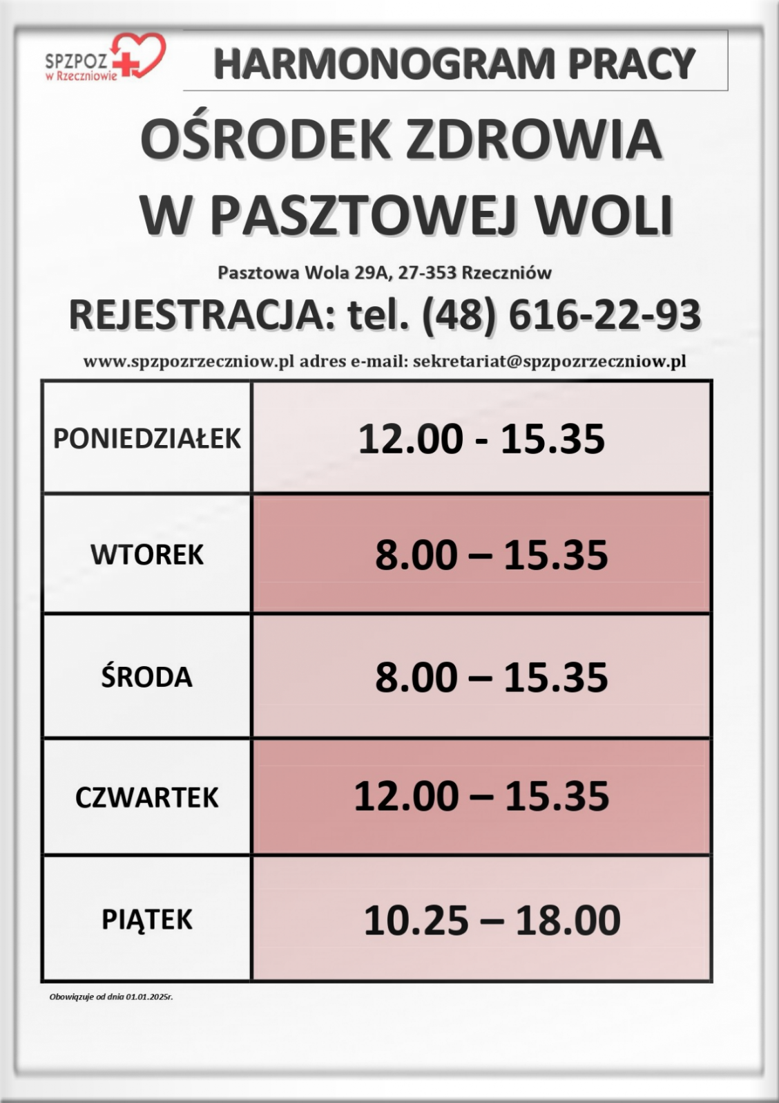 PORADNIA LEKARZA POZ PASZTOWA WOLA - Samodzielny Publiczny Zakład Podstawowej Opieki Zdrowotnej w Rzeczniowie